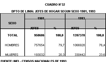 de jefes de hogar mujeres aumentó de 20,3% en 1981 a 23,6%