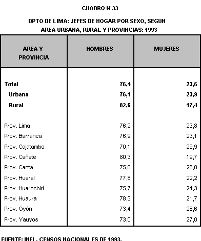 de jefes de hogar varones (80,3%) en tanto que en Cajatambo es