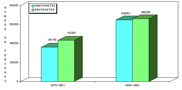 Al igual que la migración de toda la vida, el departamento de Lambayeque presenta en el quinquenio 1988 - 1993 un saldo migratorio negativo de -1,094 personas, es decir, el número de personas que han salido es mayor al que ha ingresado en dicho período. En 1976 - 1981 el saldo migratorio fue de -7,249 personas.