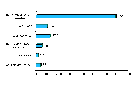 y comprándola a plazos) 72,9%. Las viviendas usufructuadas