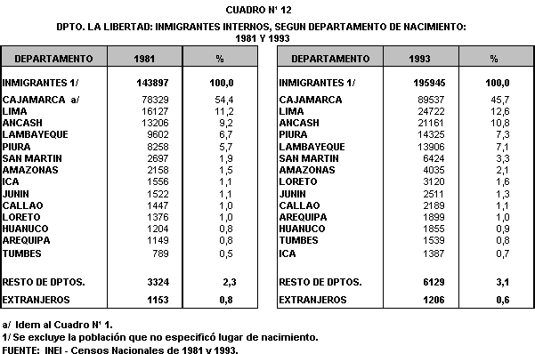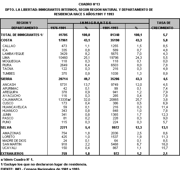 de los inmigrantes recientes son en orden de importancia: Cajamarca