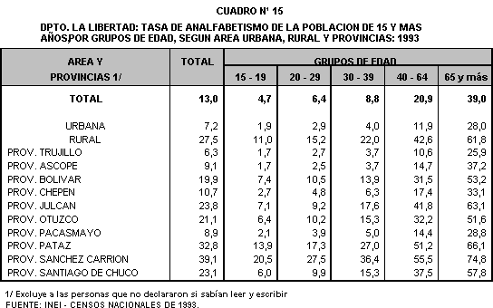disminuyendo en el área rural de 66,297 a 63,218 analfabetos