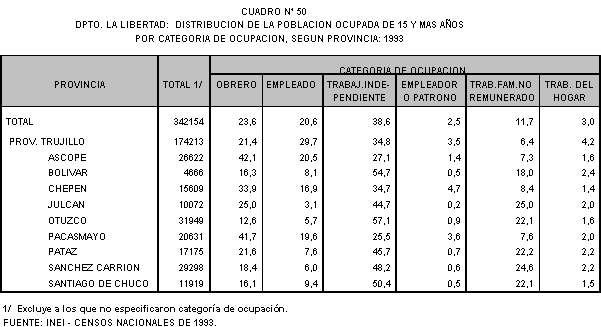 A nivel provincial la PEA asalariada (obreros y empleados), se ubica en mayor proporción en la provincia de Ascope (62,6%) seguido de Pacasmayo (61,3%) y Chepén con 50,8%.
