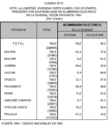 no tienen alumbrado eléctrico. En Julcán el 99,6%