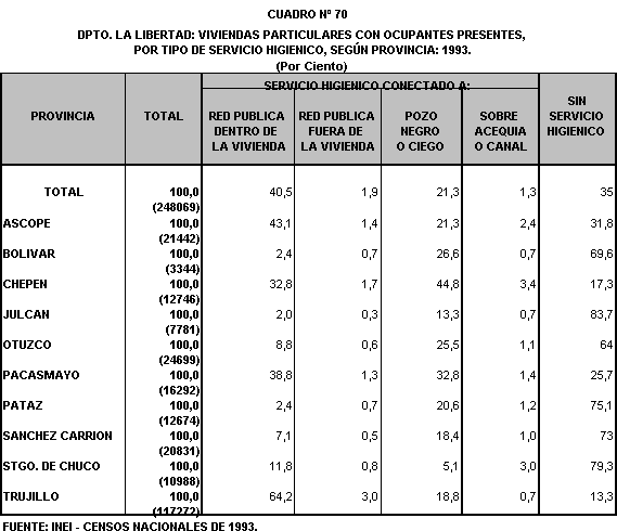 en las 248,069 viviendas censadas en el departamento de La Libertad