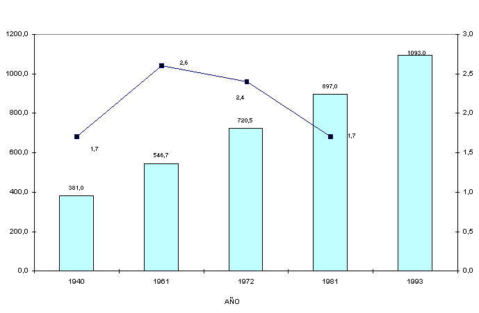 entre 1981 y 1993, experimentó una tasa de crecimiento