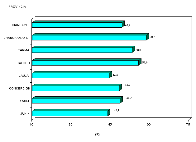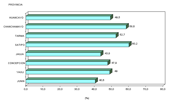 la provincia de Satipo con 60,2%, y la más baja se registra