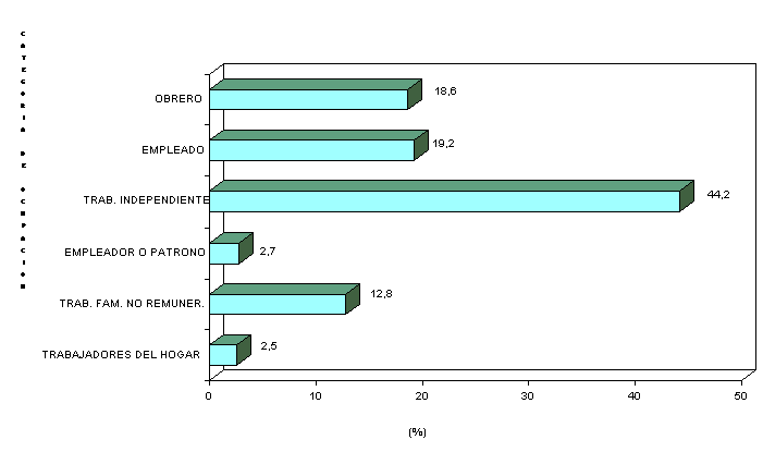 OBRERO EMPLEADO TRABAJ. INDEPENDIENTE EMPLEADOR O PATRONO TRABAJ. FAM. NO REMUNERADO TRABAJ. DEL HOGAR |