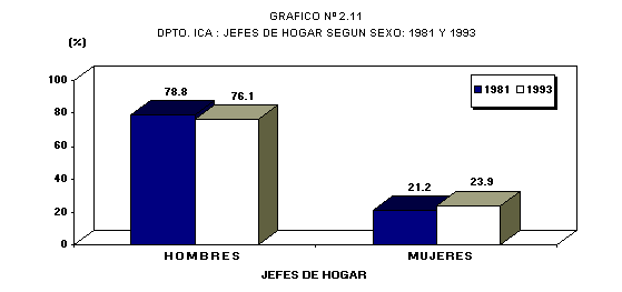 DPTO. DE ICA: JEFES DE HOGAR, SEGUN SEXO: 1981 Y 1993