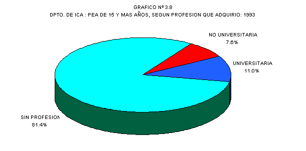 A nivel provincial, la PEA calificada se concentra en Ica, donde el 16,3% tiene alguna profesión universitaria. Respecto a profesión no universitaria, los mayores porcentajes se encuentran en las provincias de Nazca (8,4%) y Pisco (8,0%).