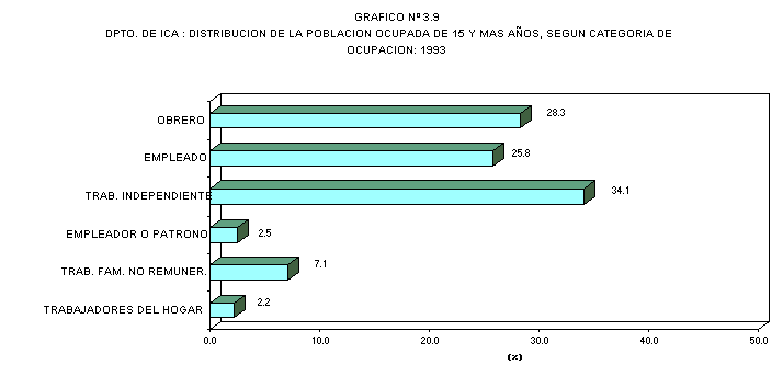 DPTO. DE ICA: DISTRIBUCION DE LA POBLACION OCUPADA DE 15 Y MAS AÑOS, POR