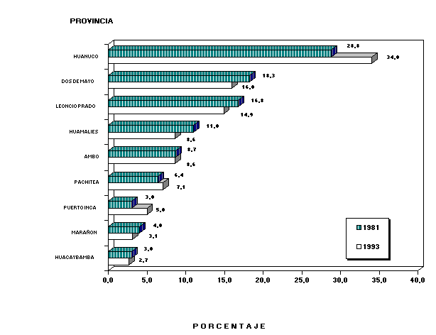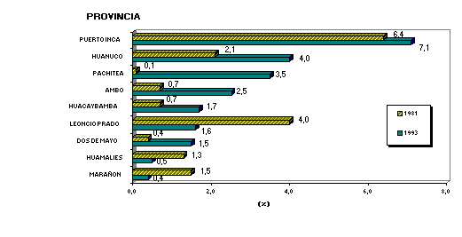 los períodos 1972-1981 y 1981-1993, las provincias de Ambo,