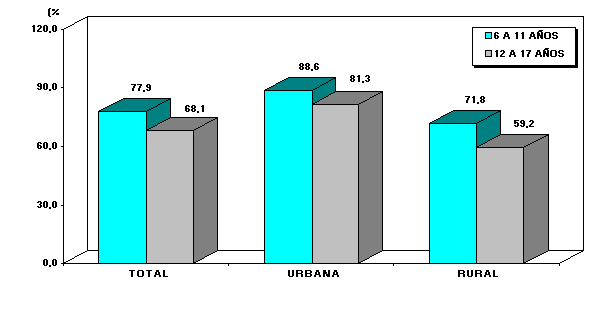 (6 a 11 años), es 77,9% y entre los jóvenes (12