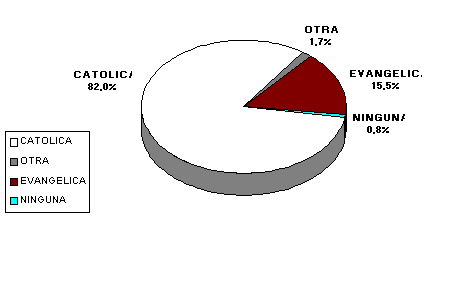 Los resultados demuestran un incremento de creyentes o seguidores de agrupaciones religiosas distintas a la católica. Es decir, 17 de cada 100 personas declararon profesar una religión distinta a la católica, perteneciendo 16 de éstos a la religión evangélica, haciendo un total de 100,805 personas. En 1981 la proporción de personas que profesaban otra religión fue de 7 de cada 100.