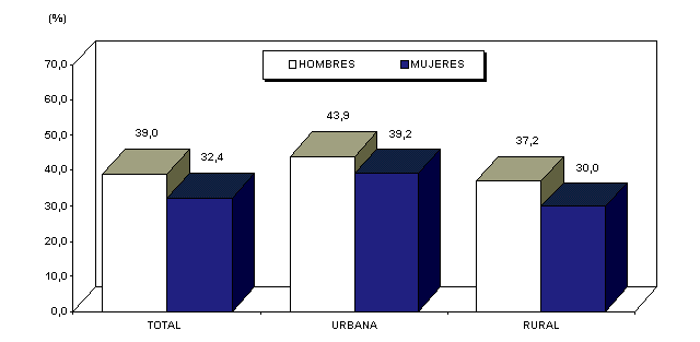 urbana (41,5%) que en la rural (33,5%). La asistencia segdn