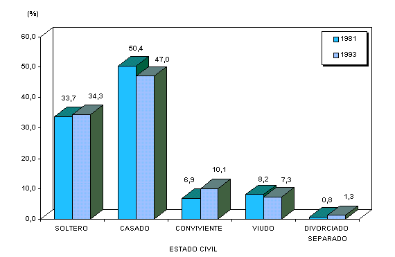 consensual o convivencia que de 6,9% en 1981 sube a 10,1% en 1993.