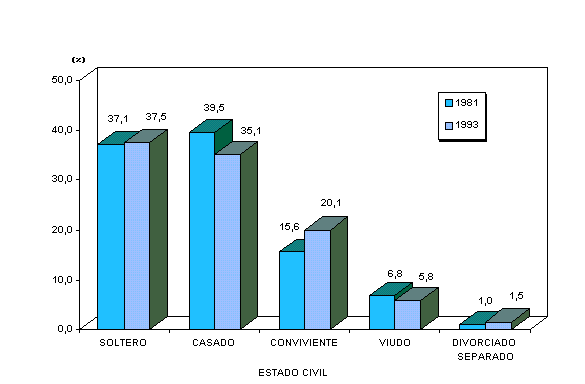 19,3% en 1981 a 23,5% en 1993. Por otra parte, los casados y