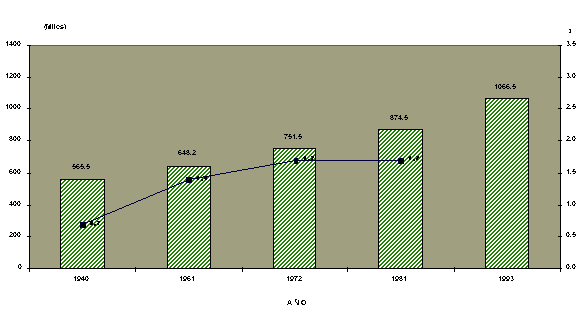 Considerando que la población total de 1981 fue de 874,463 personas, en términos relativos, el incremento intercensal es de 22,0%.