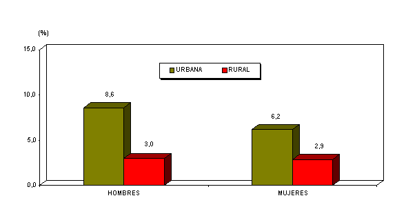 En la zona urbana el 8,6% de hombres y el 6,2% de mujeres que