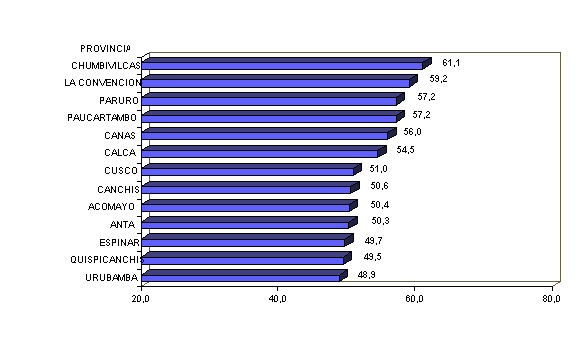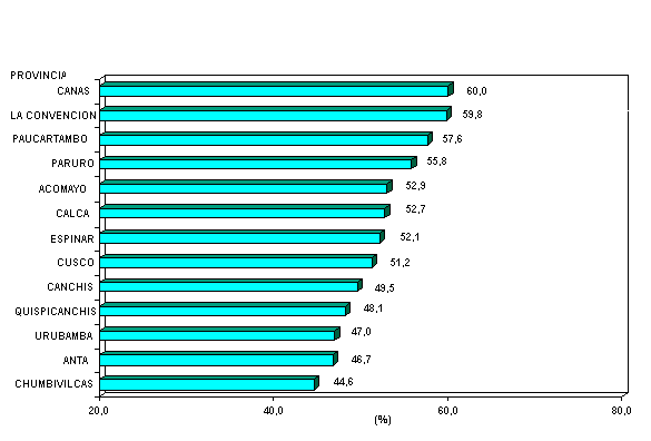 (48,1%), Urubamba (47,0%), Anta (46,7%) y Chumbivilcas con 44,6%.