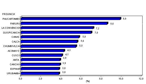 (7,0%), Canas (5,8%), Calca (5,6%) y Chumbivilcas con 5,5%.