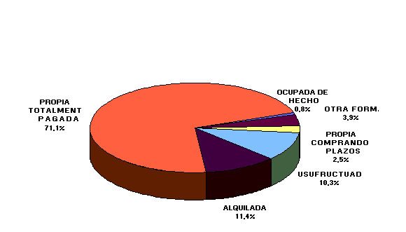 TOTAL PROPIA TOTALMENTE PAGADA PROPIA COMPRANDO A PLAZOS USADA CON AUTOR. DEL PROP. SIN PAGO ALQUILADA OCUPADA DE HECHO OTRA FORMA |