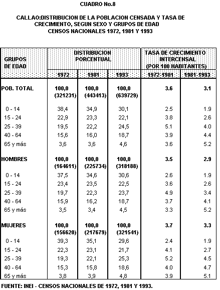 En el periodo intercensal 1981 -1993, la población masculina se incrementa en 92,454 personas, es decir, es decir en 41,0% en 12 años. Asimismo, la población femenina aumentó en 103,862 personas, que en términos porcentuales equivale al 47,7%.