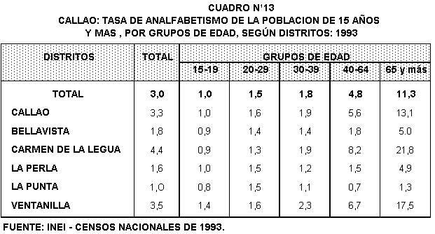 según el Censo de 1993 existen 13,561 analfabetos de 15