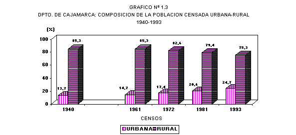 En cifras absolutas, la población del área urbana continúa aumentando; paralelamente su velocidad de crecimiento se incrementó hasta mediados de la década del 60. Entre los censos de 1961 y 1972, el crecimiento de la población urbana fue de 3,6% por año. Este ritmo disminuyó a 3,3% entre 1972-1981, ritmo que se mantuvo en el período intercensal 1981-1993. En estos mismos períodos la población del área rural ha aumentado a un ritmo inferior al observado en el área urbana, habiendo pasado de 1,0% a 1,3%.