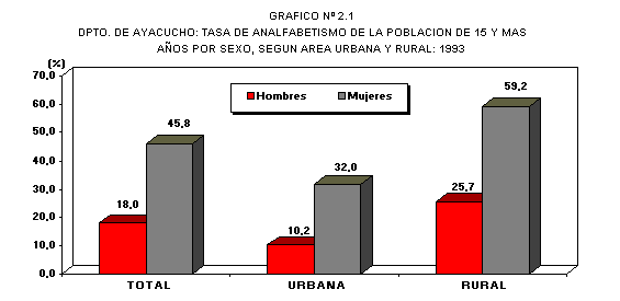 urbana la tasa de analfabetismo baja de 26,7% en 1981 a 21,7%