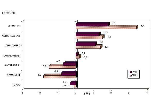 poblacional en relación a 1981 son: Aymaraes 3,3 puntos