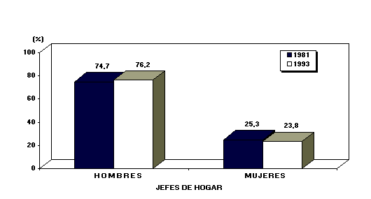 de mujeres jefes de hogar disminuyó de 25,3% en 1981 a