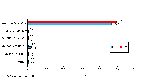SEGUN TIPO DE VIVIENDA: 1981 Y 1993