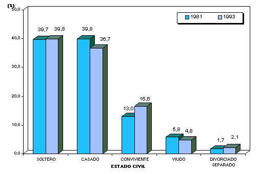 14,9% en 1981 a 18,3% en 1993. Por otra parte, los casados y