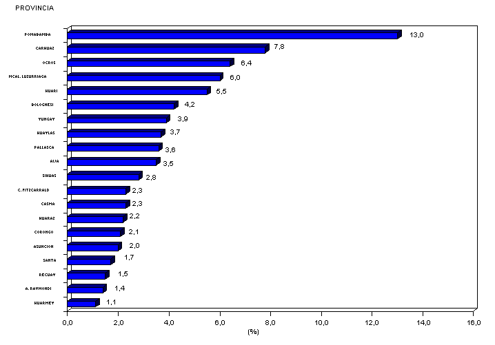 (13,0%), Carhuaz (7,8%), Ocros (6,4%), Mariscal Luzuriaga (6,0%),