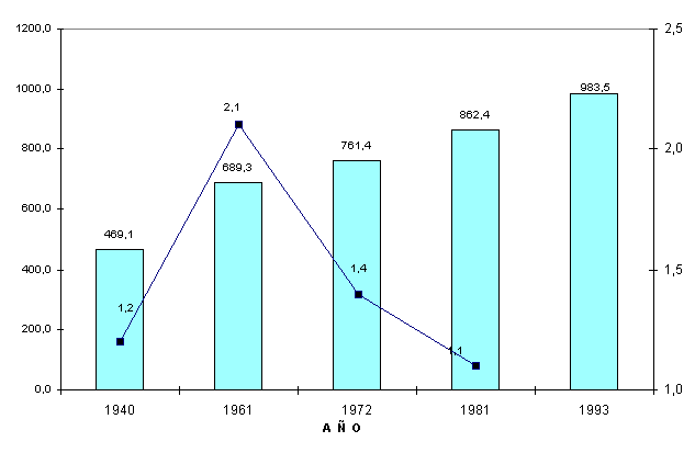 de crecimiento fue de 1,4%. Entre los censos de 1961 y 1972, el