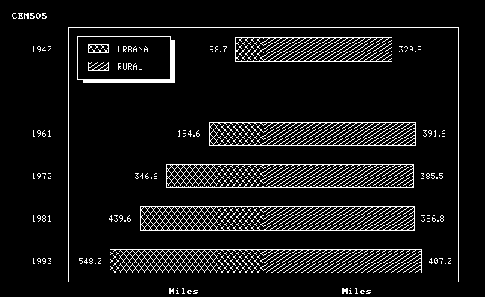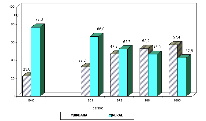 En cifras absolutas la población del área urbana continúa aumentando no obstante, desde mediados de la década del 60 su velocidad de crecimiento viene disminuyendo sensiblemente hasta alcanzar el 1,9% entre 1981 y 1993, en el período 1961-1972, el crecimiento fue de 5,4% para luego evidenciar una disminución importante al descender a 2,6% entre 1972 y 1981. En estos mismos períodos, la población del área rural ha venido creciendo a un ritmo inferior al observado en el área urbana, habiendo pasado -0.1% en 1961-1972 a 0,4% en 1981-1993.