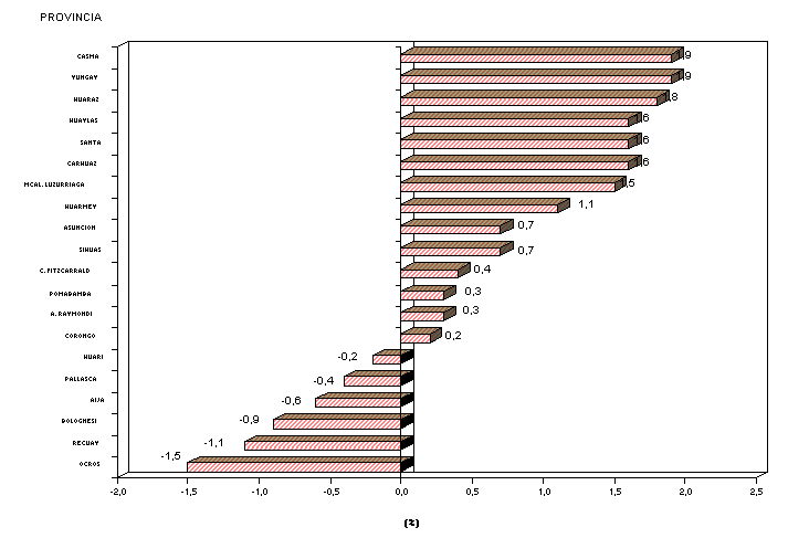 negativo, están seis provincias: Huari con -0,2%, Pallasca