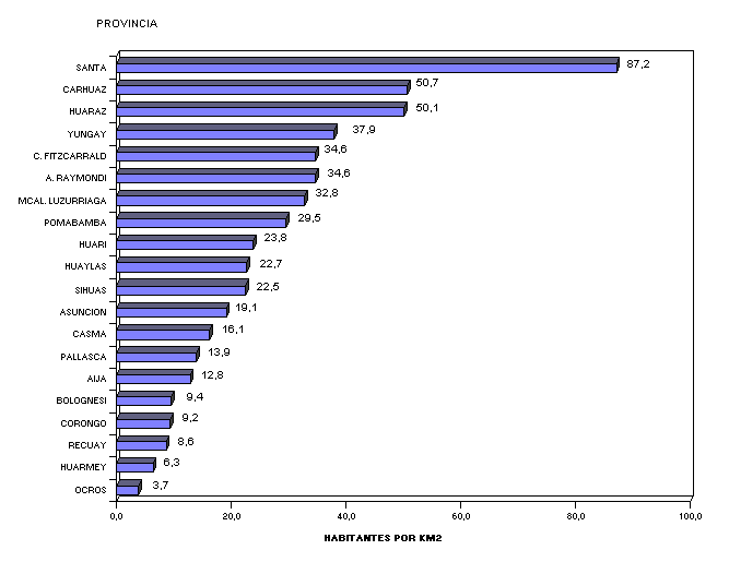 (29,5 h/km²), Huari (23,8 h/km²), Huaylas (22,7 h/km²)