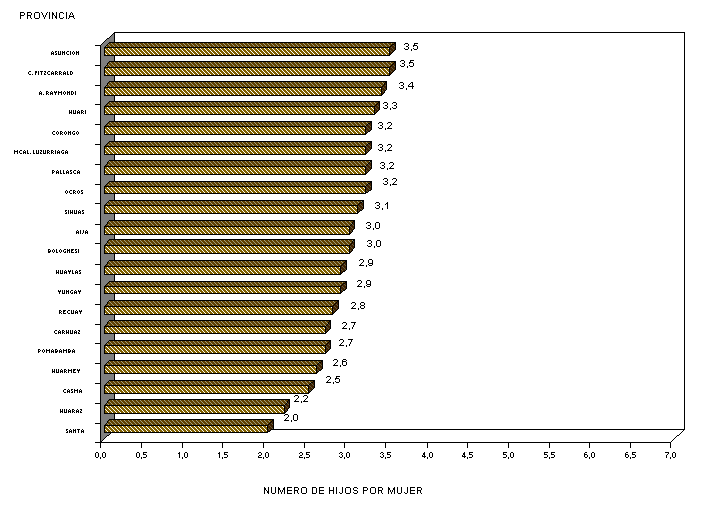 una, Huari con 3,3 hijos por mujer, Antonio Raymondi con 3,4 hijos