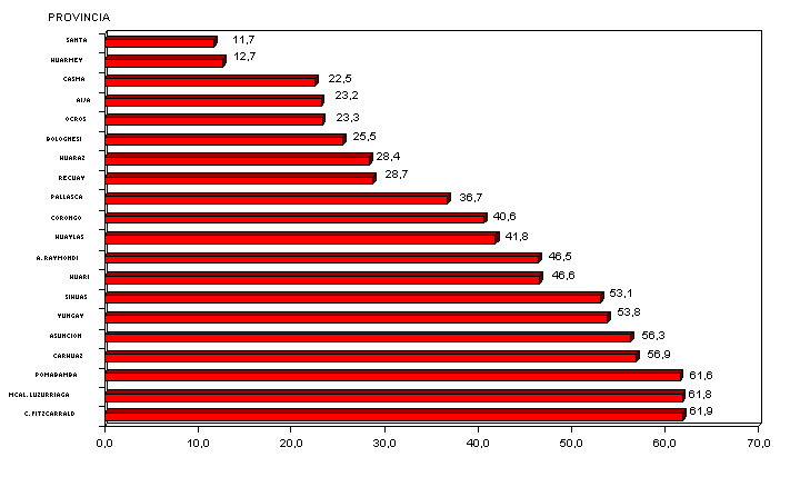 (8,4%), Ocros (14,4%), Aija (15,2%), Bolognesi (16,0%), Casma(17,3%),