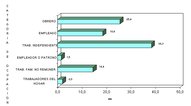 TOTAL 1/ OBRERO EMPLEADO TRABAJ. INDEPENDIENTE EMPLEADOR O PATRONO TRABAJ. FAM. NO REMUNERADO TRABAJ. DEL HOGAR | 47063 29979 114603 1246 11155 4195 | 22,6 14,4 55,0 0,6 5,4 2,0 | 60438 43873 91319 3619 34319 4650 | 25,4 18,4 38,3 1,5 14,4 2,0 |