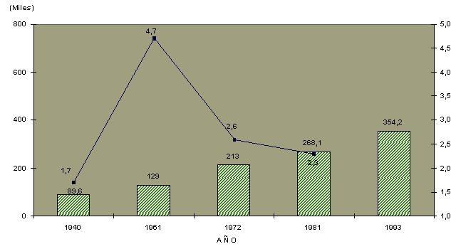 En los dltimos 50 aZos se ha producido un significativo incremento poblacional. La poblaci\n total del departamento en 1993, es el cu<druple que la de 1940, 2,7 veces de la existente en 1961, 1,7 veces que la de 1972 y 1,3 veces que la poblaci\n total de 1981.