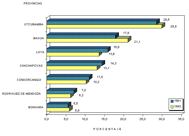 - Las dos provincias m<s importantes en cu<nto a su volumen poblacional mantienen la misma ubicaci\n de 1981, en el orden siguiente: Utcubamba (1E lugar) y Bagua (2E lugar).