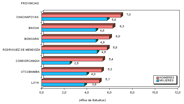 de estudios alcanza-dos, las provincias de Chachapoyas (6,3