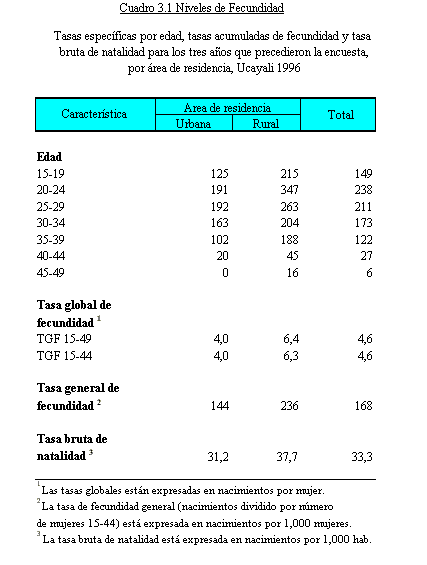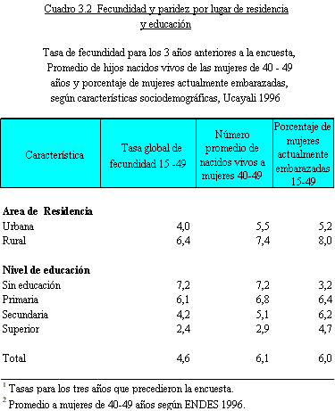 1996. En el departamento de Ucayali, el mayor aporte de la fecundidad