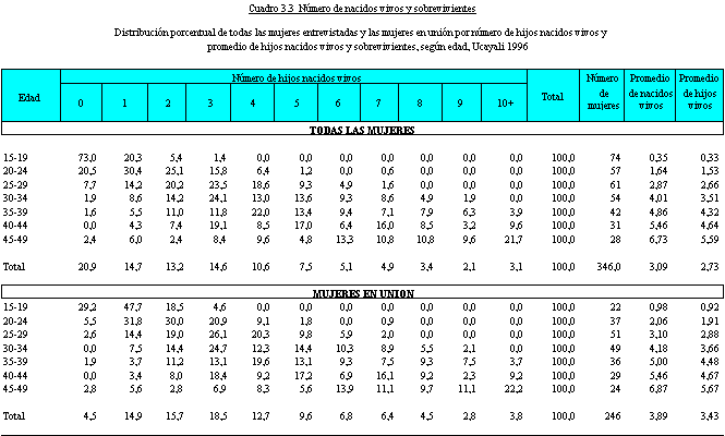 tienen en promedio 3.9 hijos nacidos vivos, el mismo que es de