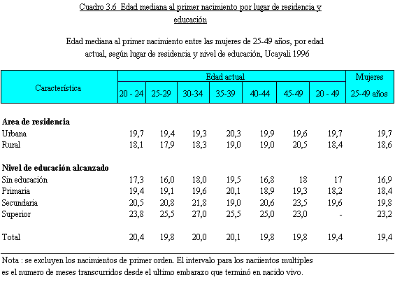nacimiento. Este indicador se utiliza en el Cuadro 3.6 para mostrar