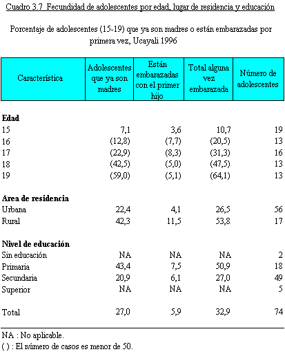 se considera como adolescentes las mujeres de 15 a 19 años.