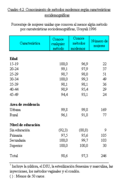 que, el 89 por ciento de las mujeres en edad reproductiva conocen
